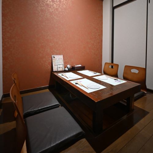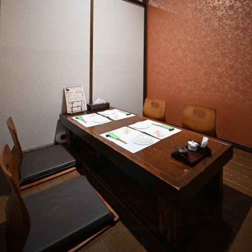 掘りごたつ席は会話のしやすさと居心地の良さを両立。足を伸ばしてリラックスでき、食事中も姿勢が安定するため、ゆったりと楽しめます。